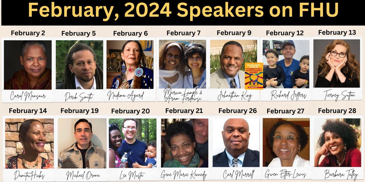 F- February 9 - Dr. Jonathan King ("Let's Talk About DEI (Diversity , Equity , and Inclusion)". Dr. Jonathan King is a DEI (Diversity, Equity, & Inclusion) Consultant who works closely with Colleges and Universities to facilitate their journey toward becoming more inclusive at every level of the organization. His mission is to create workplaces that champion the idea of creating unity in diversity, where all employees are respected and valued regardless of their color, ethnic heritage, nationality, religion, gender, or sexual orientation. Contact: https://www.jkingconsulting.com